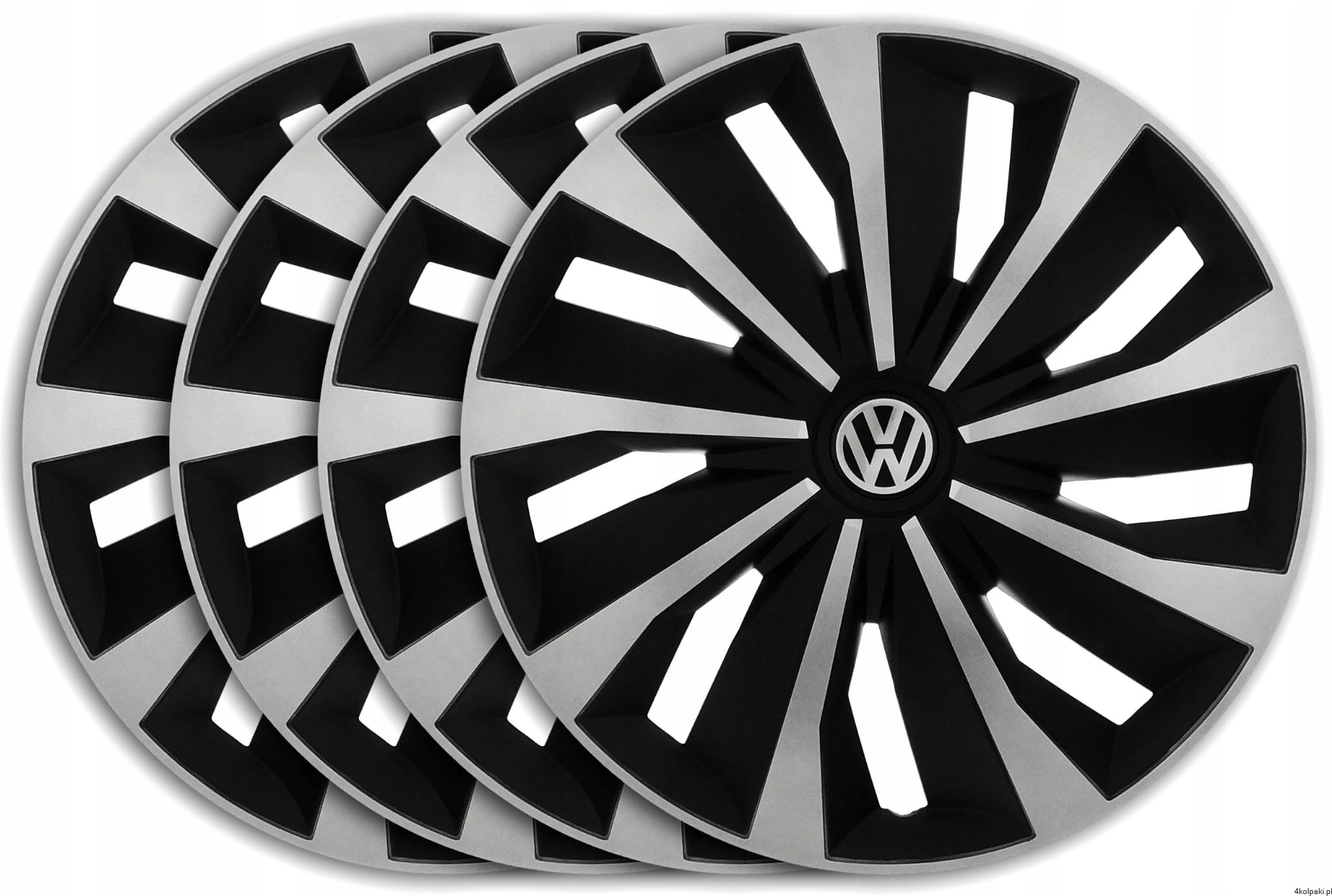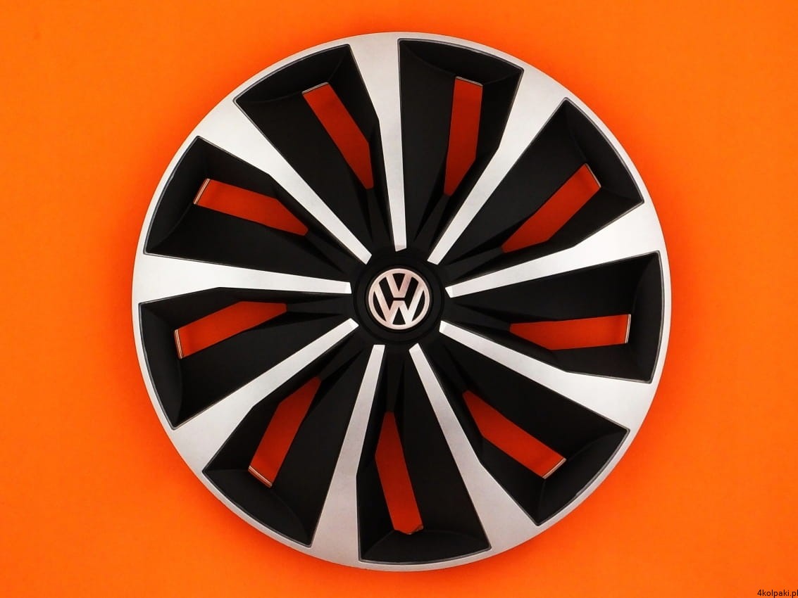 Zestaw czterech (4) nowych 13" KOŁPAKÓW model GRIP PRO w kolorze SREBRNO-CZARNYM z najwyższej jakości EMBLEMATAMI VOLKSWAGEN.