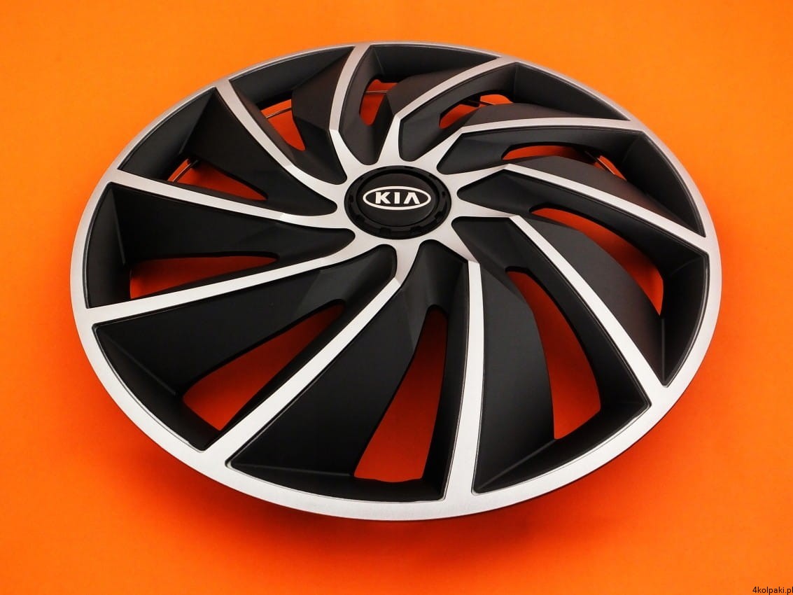 Zestaw czterech (4) nowych 14" KOŁPAKÓW model TURBO w kolorze SREBRNO-CZARNYM z najwyższej jakości EMBLEMATAMI KIA.